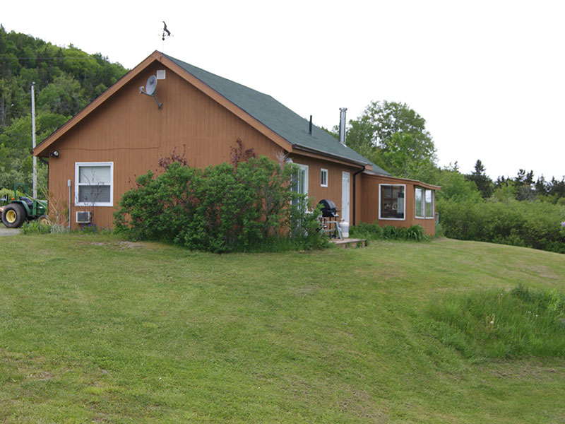 The ground floor features an open concept living and family dining area, kitchen, and two-piece bath. Guests enjoy direct access to a covered barbeque area and large furnished deck overlooking the Margaree River Valley and village of East Margaree.